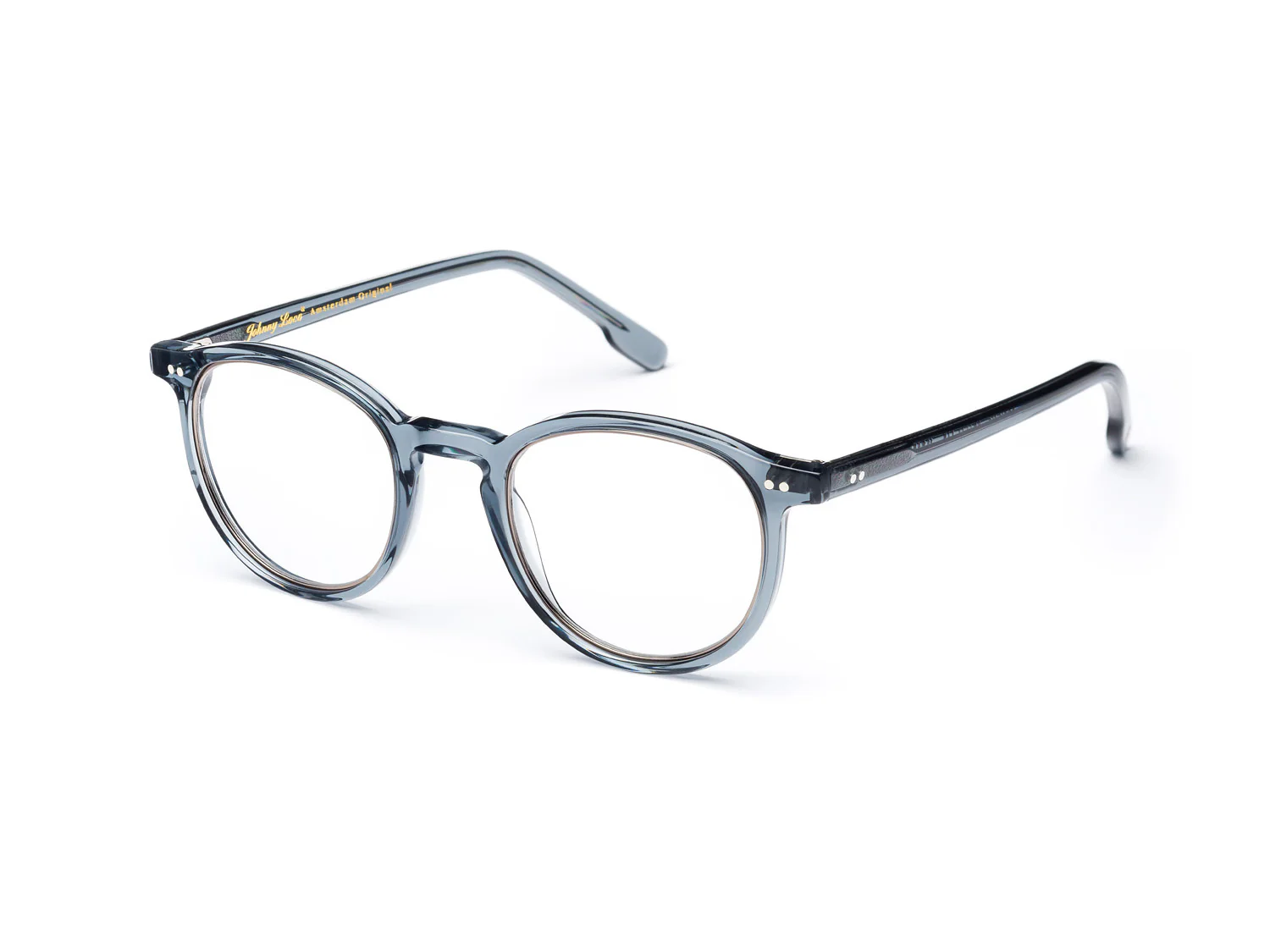Available in four color ways, this classic optical frame features ultra light and super slim cellulose acetate with stainless steel ring, a comfortable key hole nose bridge, and high quality stainless steel 5-barrel rivet hinges.