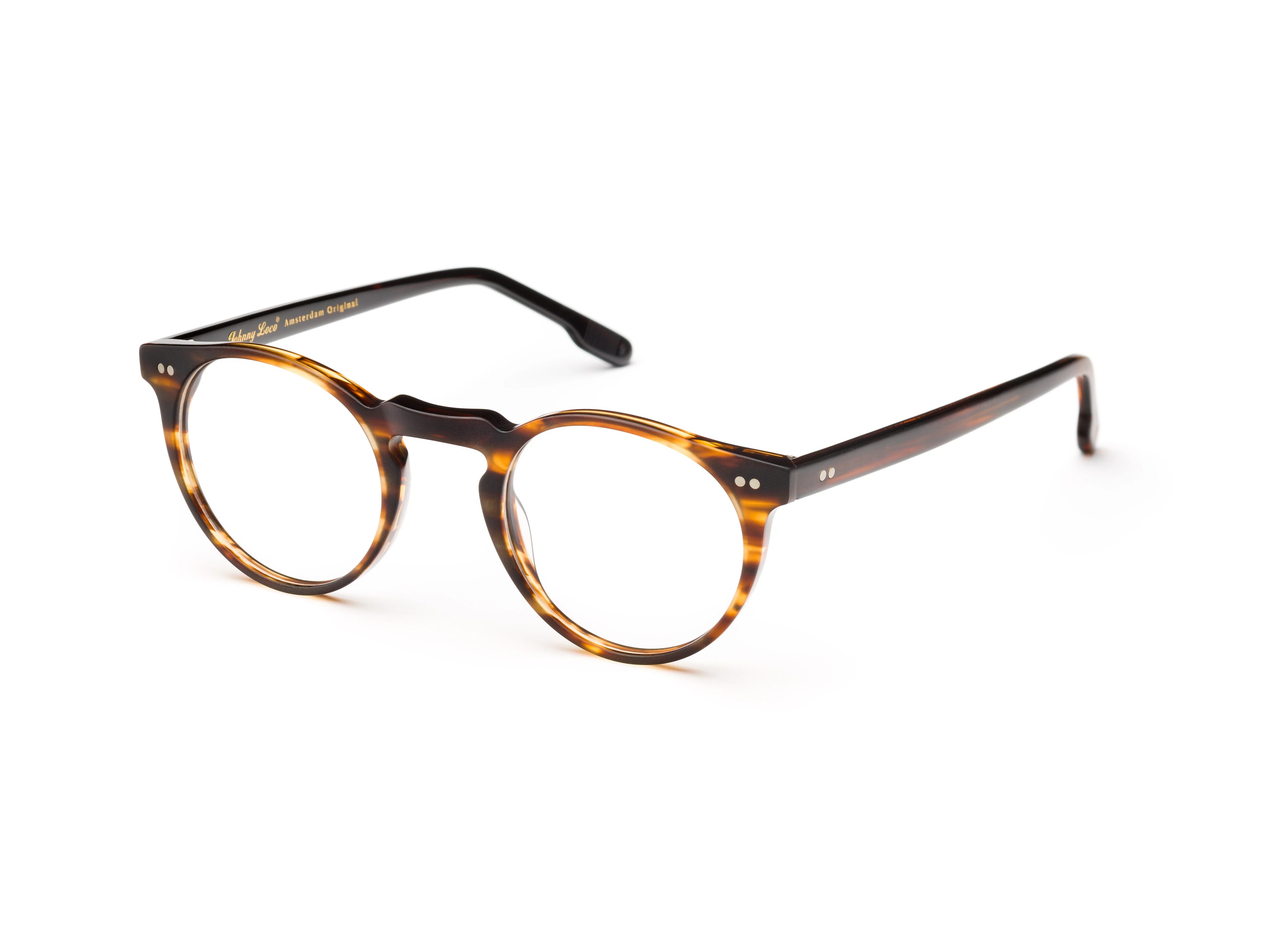 Available in four attractive color ways, this semi round shaped optical frame features sturdy and tough cellulose acetate with a comfortable saddle nose bridge and high quality stainless steel 5-barrel rivet hinges.